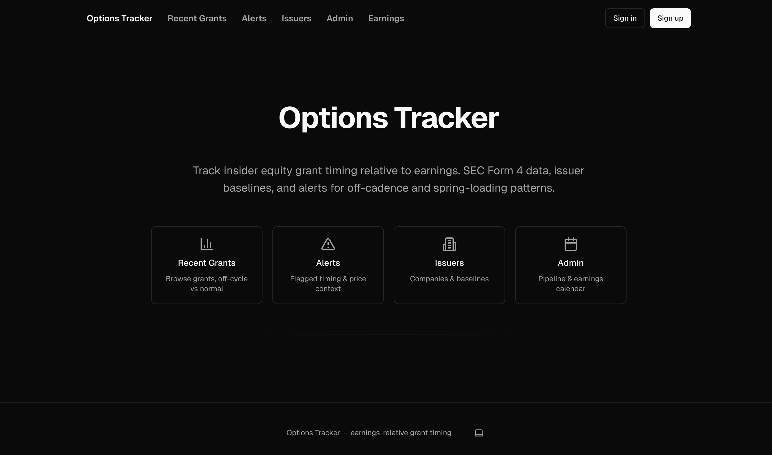 Essentially, the tracker takes a watchlist and analyzes the timing of historical option grants. From there, it builds a profile of the historic timing behind those grants. Then, when new Form 4s are filed, the app evaluates the grant, compares it to the historic timing, and flags grants that appear to be potential spring loading or bullet dodging.